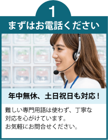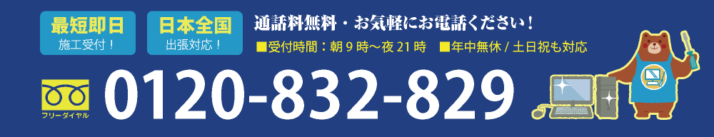 受付は午前9時から午後の21時まで対応しています。また、お仕事の都合により深夜や早朝でないと都合がつかないお客さまでも別料金を追加の上、修理サポート対応をうけたまわっております。
