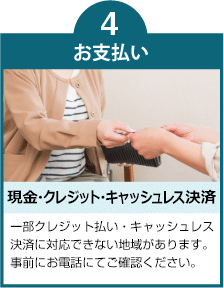 一人暮らしや同居の方がご不在の際、男性スタッフが訪問することに抵抗があるお客さまに対して「女性スタッフ同行サービス」をご用意しています。別途料金は頂戴しておりますが、お気軽にお問い合せください。